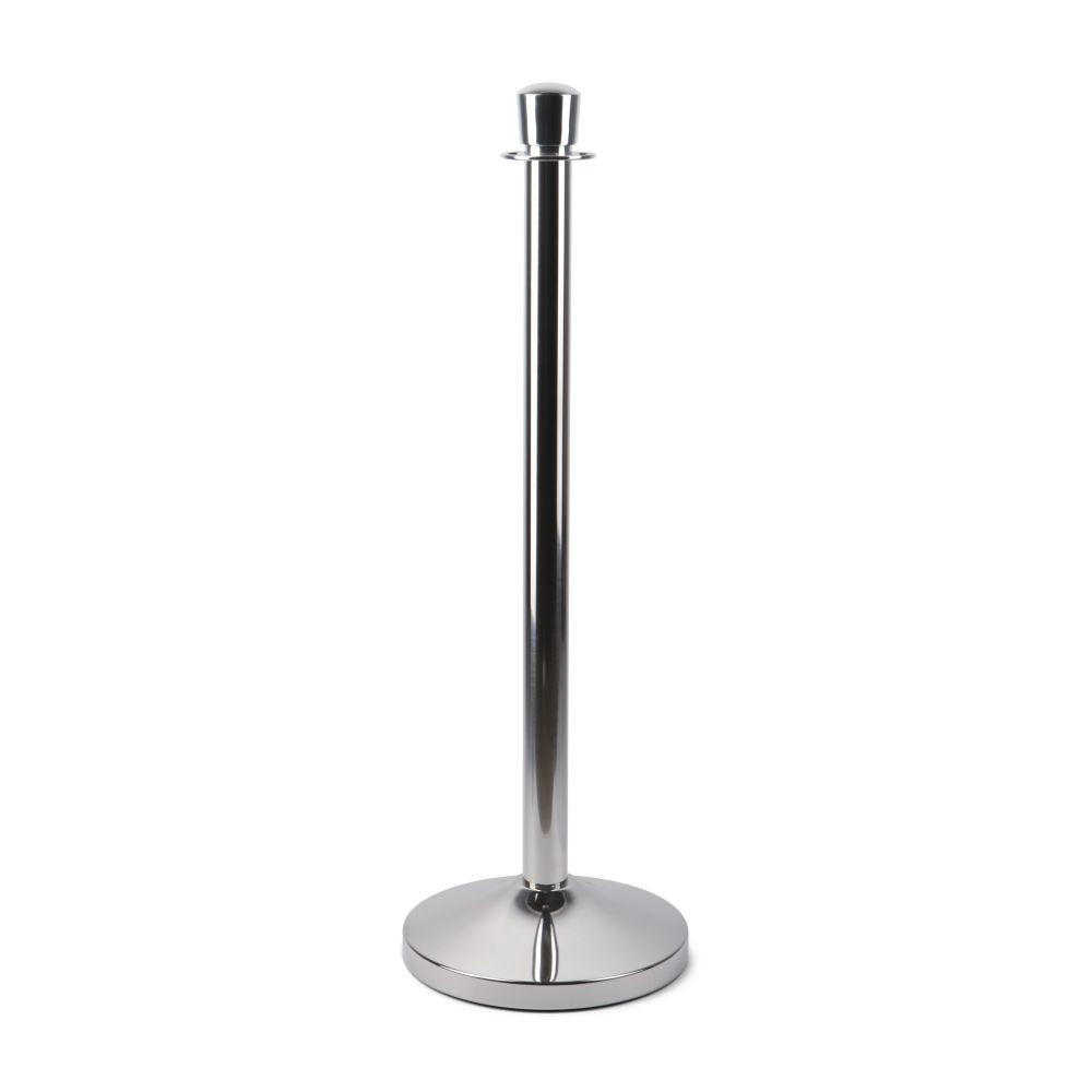 Ständer für Absperrkordel mit gebürsteter Optik.