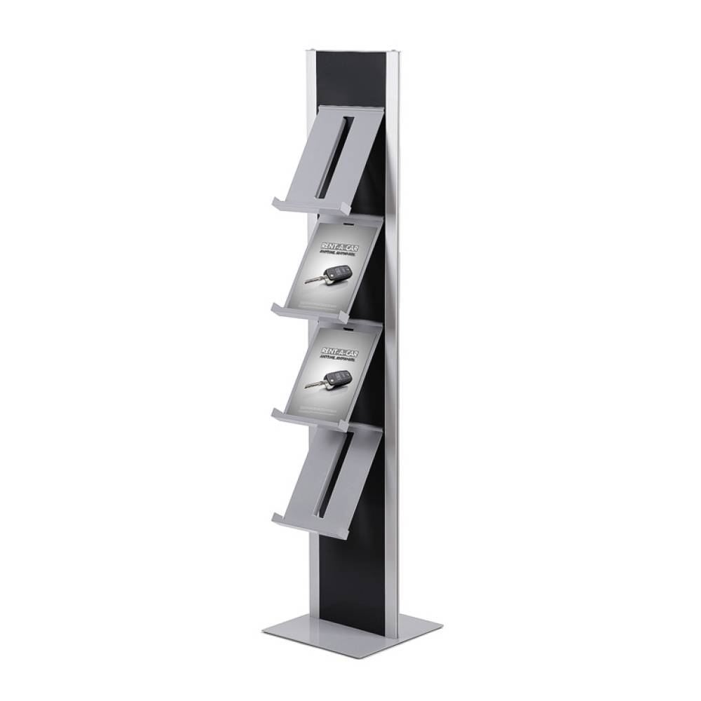 - Einseitig oder doppelseitig nutzbar (4 oder 8 Prospektablagen).