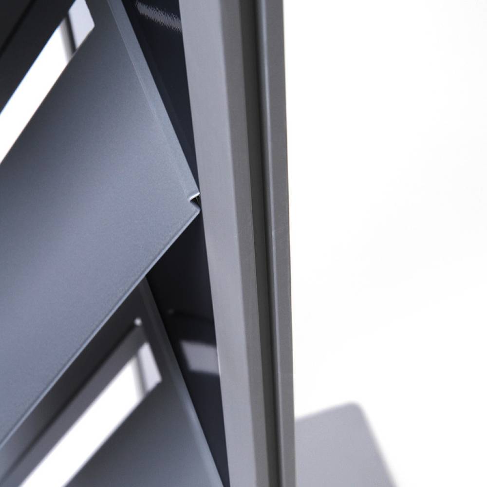- Erweiterbar für bis zu 8 Prospektablagen für eine doppelseitige Nutzung.
