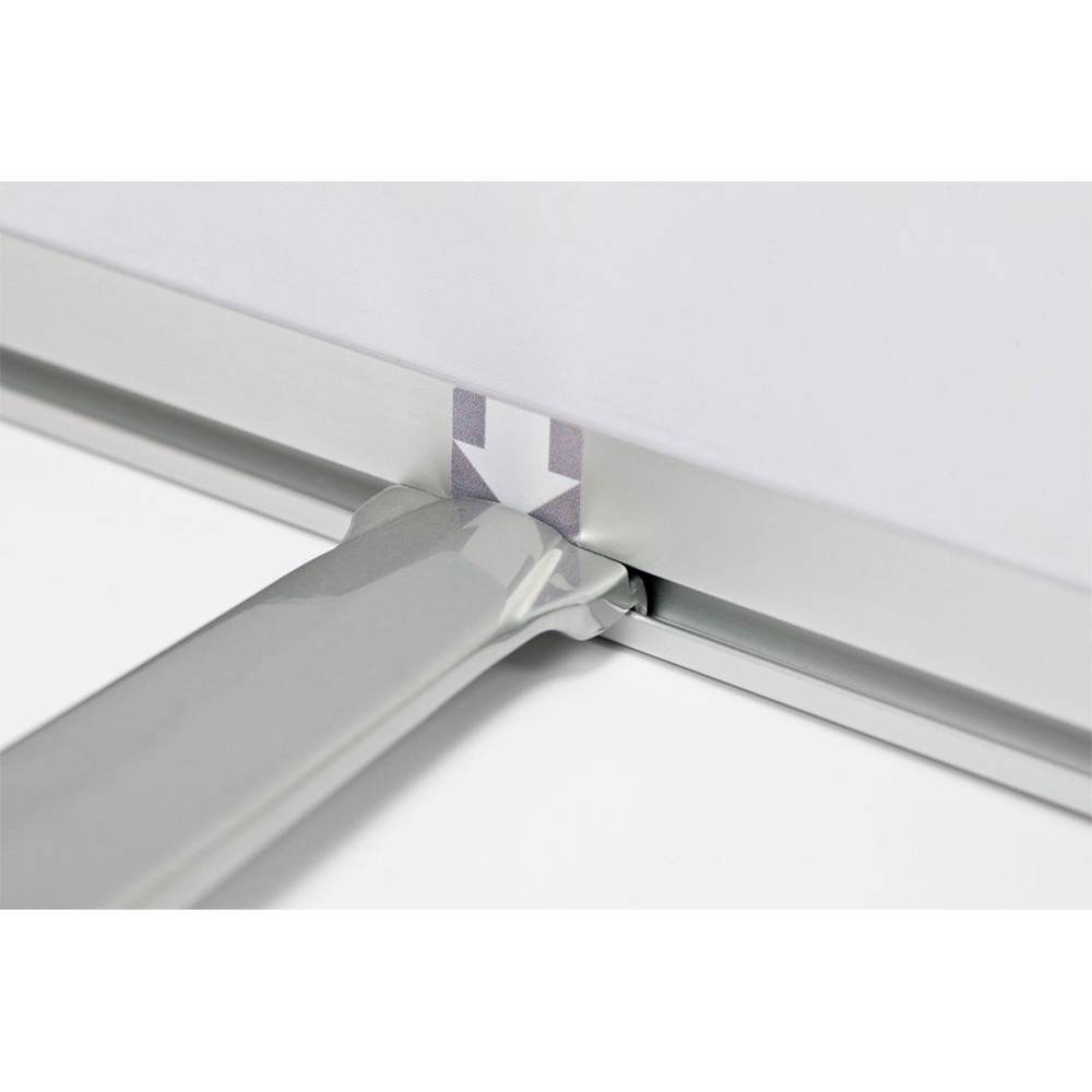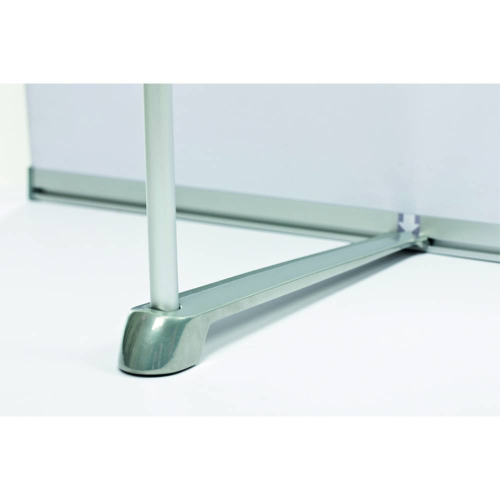 Hier wird Komfort groß geschrieben. Dank robuster Klemmschienen oben und unten lässt sich der Druck einfach befestigen und auswechseln. Das Banner ist höhenverstellbar und hat einen formschönen Fuß für zusätzliche Stabilität. Durch das reduzierte Design richtet sich die gesamte Aufmerksamkeit auf Ihren Druck!