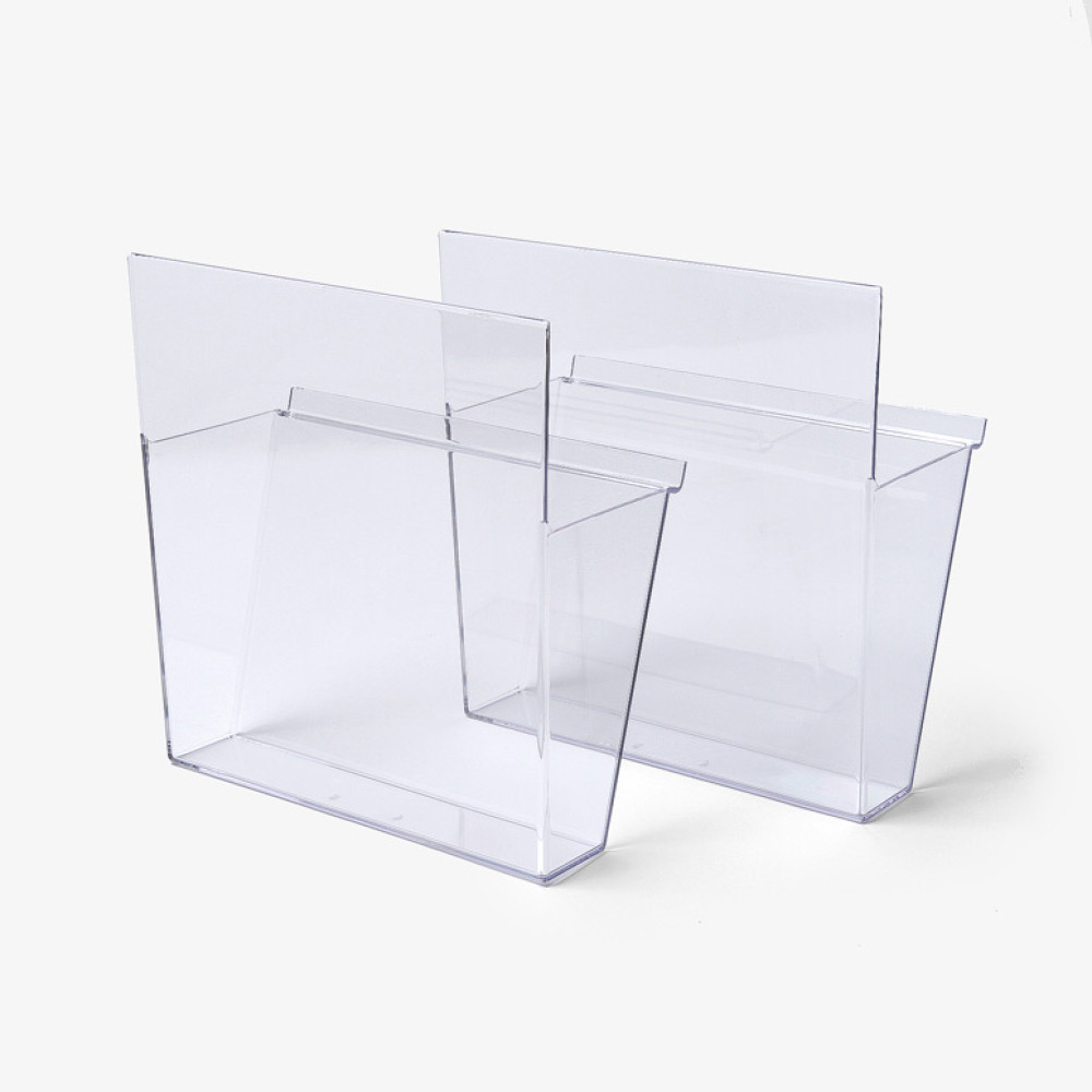 Prospektablagen Kunststoff-Spritzguss DIN A4. Das tranzparente Design stellt Ihre Botschaft in den Vordergrund. Die Ablagen sind kostengünstig und effizient. Die Ablagen sind jeweils im 2er Set erhältlich und für die Artikel BRT, BRTL, BRW, BRWBL, TRYS18, TRYS21, TORRE6 sowie für TORRE12 geeignet. Bitte achten Sie darauf, dass BRW und BRWBL durch die Wandmontage nur mit 4 Ablagen bestückbar sind. Die Artikel BRT sowie BRTL sind doppelseitig nutzbar und dadurch mit bis zu 8 Ablagen bestückbar. Die anderen Artikel sind wie folgt bestückbar: TORRE6 = bis zu 6 Ablagen; TORRE 12 = bis zu 12 Ablagen; TRYS18 = bis zu 18 Ablagen und TRYS21 = bis zu 21 Ablagen.