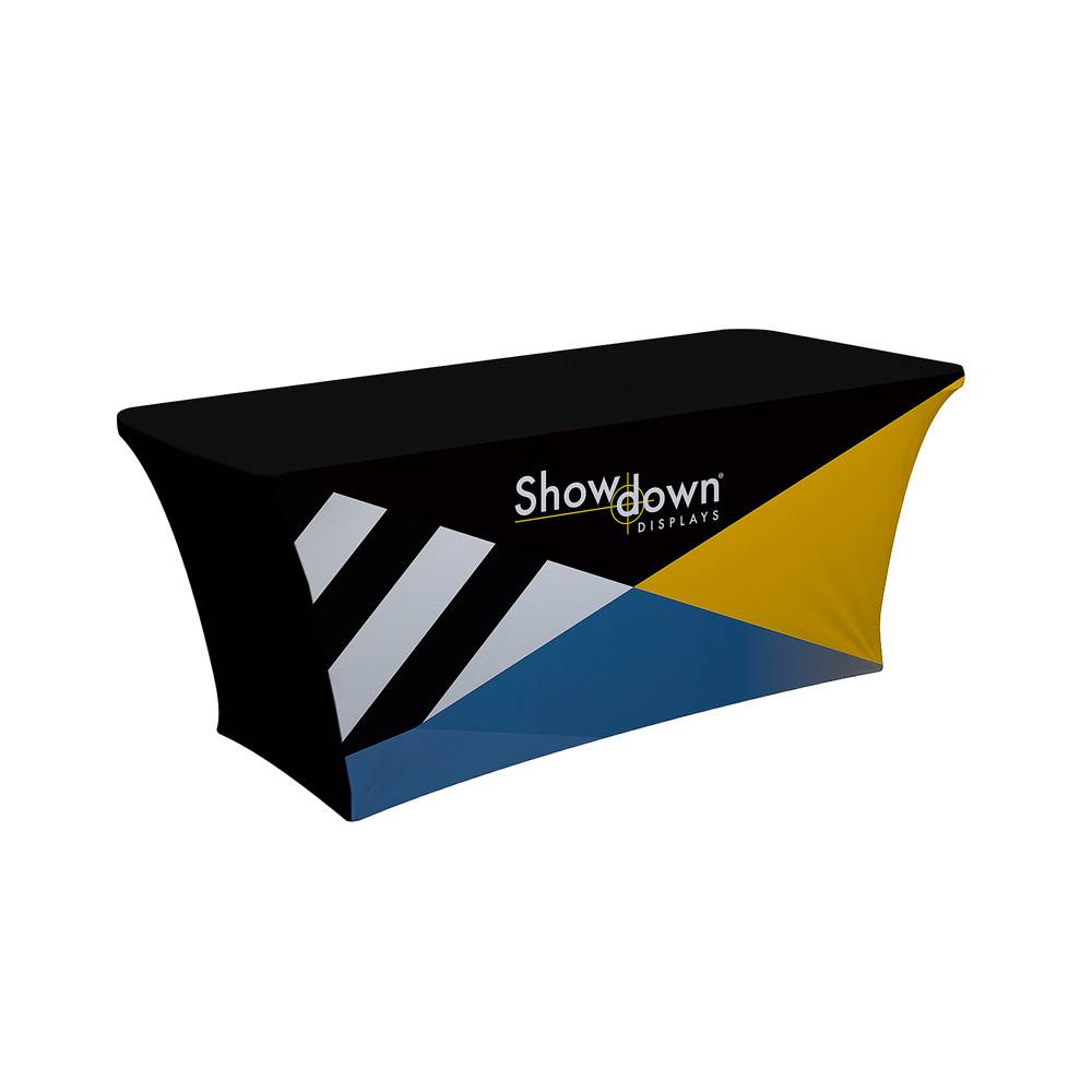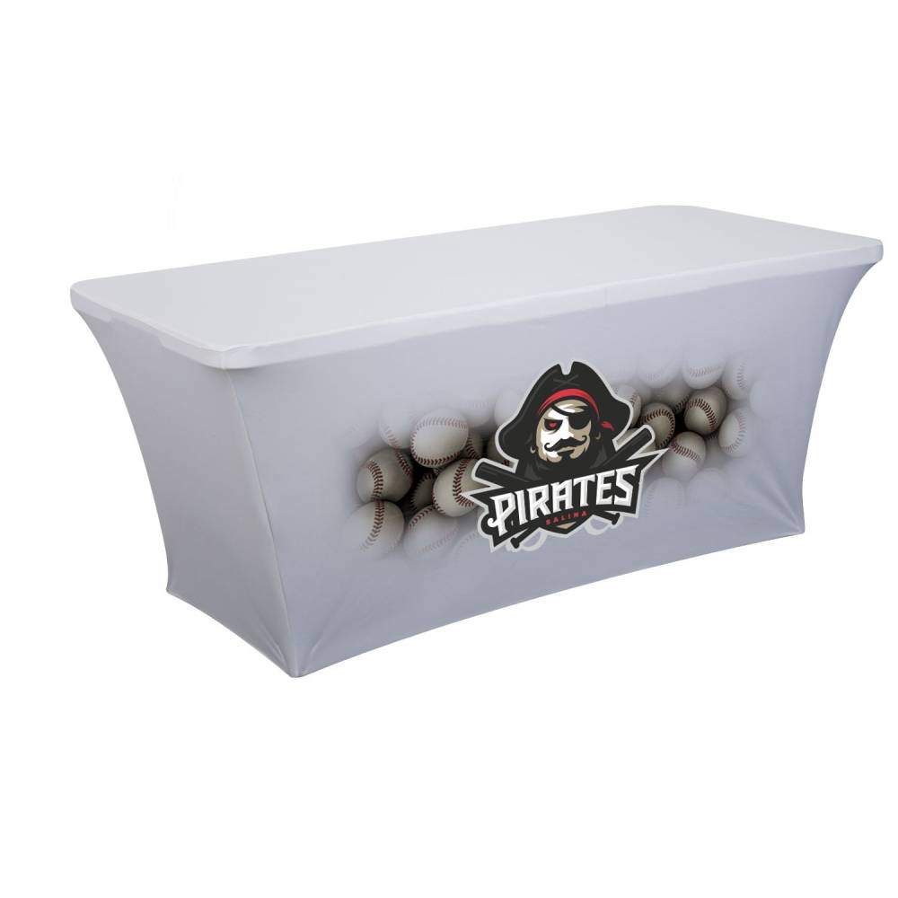 Eine enge und formschlüssige Tischabdeckung und eine attraktive Option um Ihre Marke zu fördern. Die Husse passt sich der Tischfrom eng an und kreiert ein raffiniertes Erscheinungsbild.