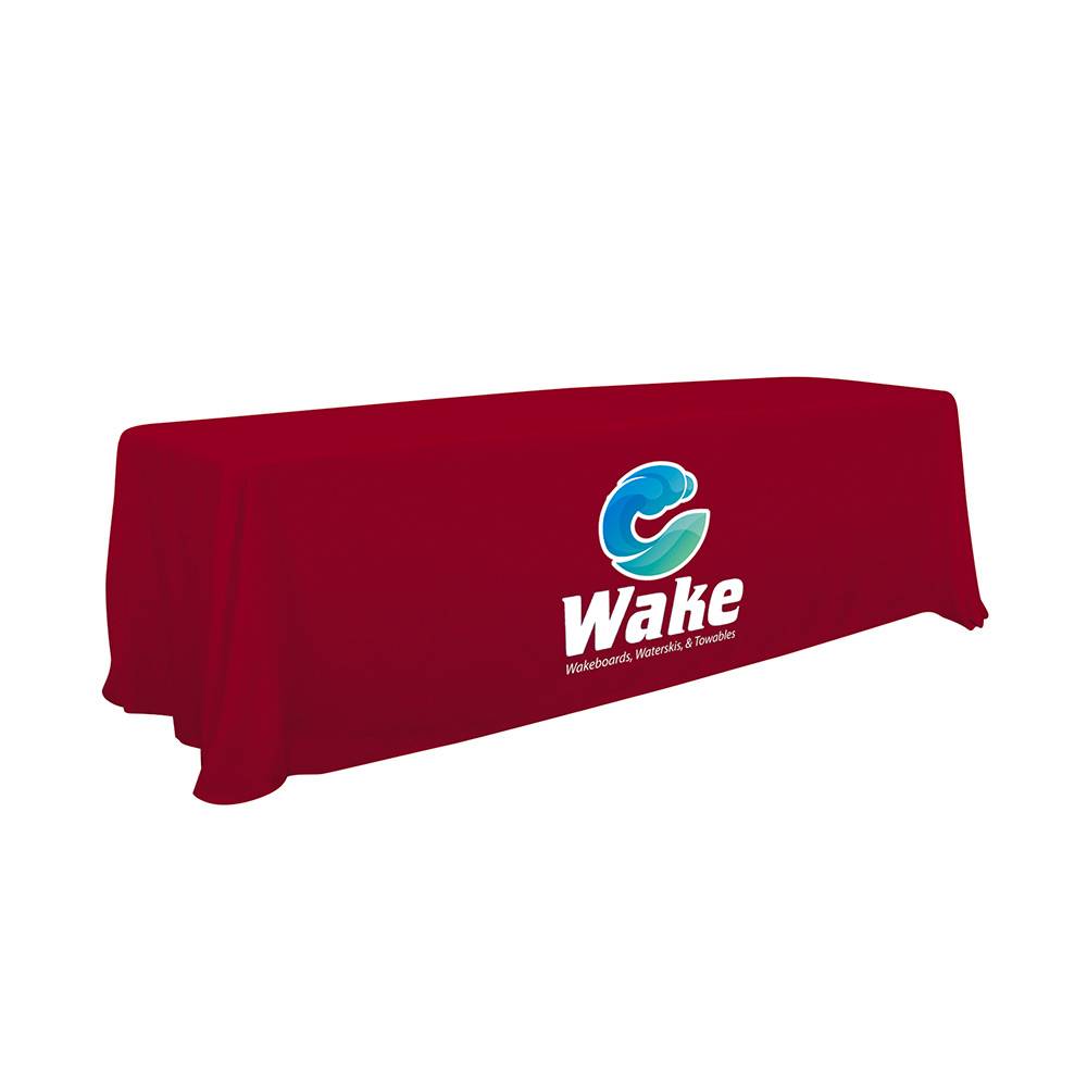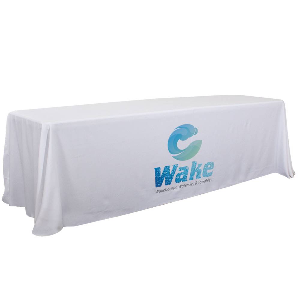 Zeigen Sie Ihr Logo auf der Vorderseite, oben oder an einer Seite der Tischhusse. Ihre Tischhusse ist mit einem einfarbigen Hintergrund und mit einem Logo oder Branding Ihrer wahl bedruckt. Verwenden Sie die Druckvorlagen um die möglichen Logo-Bereiche zu sehen.